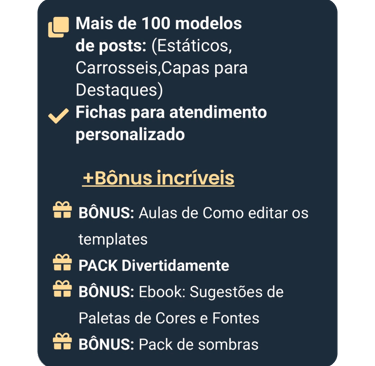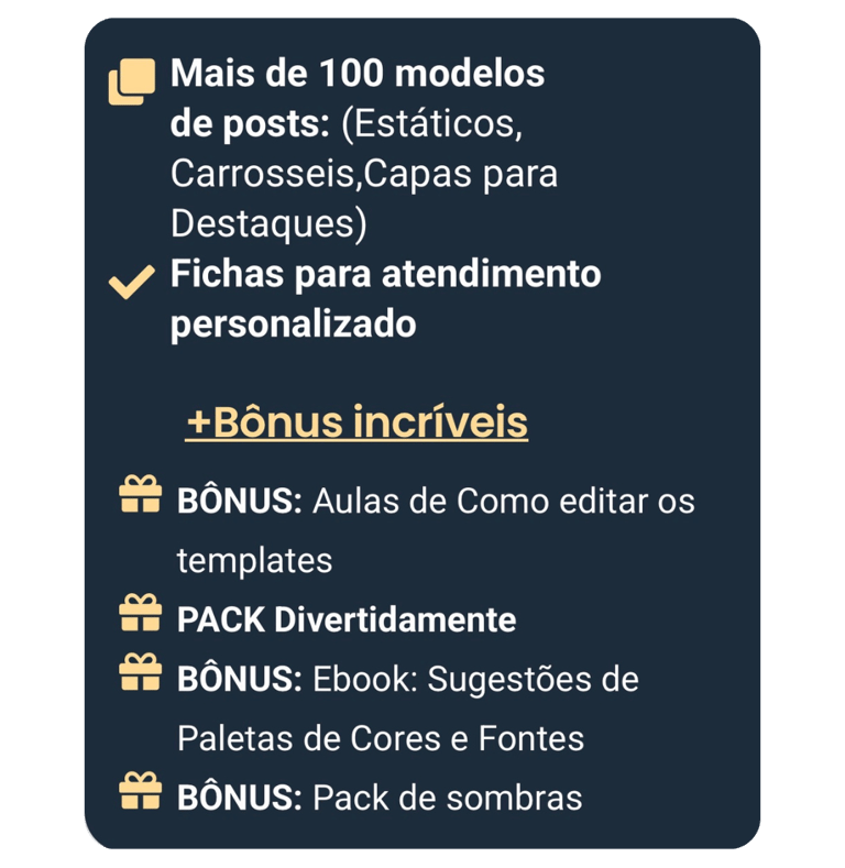 Todos os posts possuem legendas prontas inclusas organizadas (só copiar e colar)